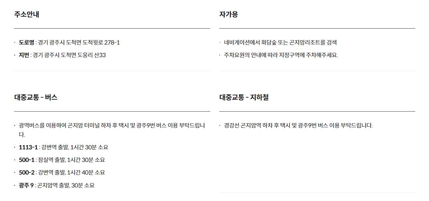 화담숲 주변에는 다양한 관광지가 위치해 있습니다.