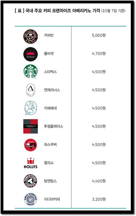 ◈ 한국 내 커피 가격 인상 현황