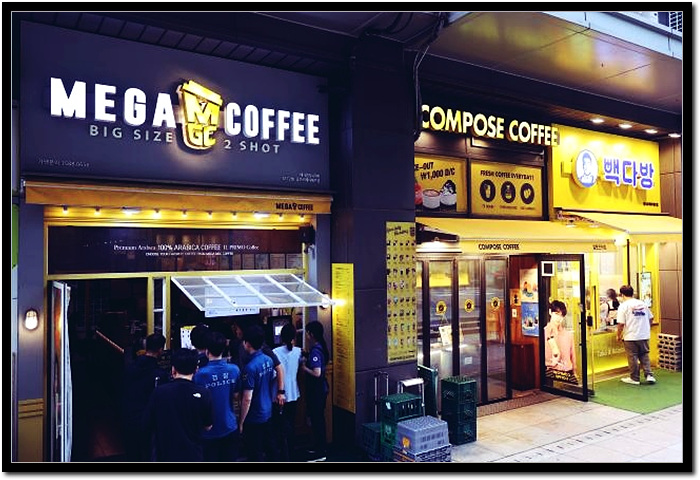 이러한 인기에 힘입어 저가 커피의 대표 브랜드인 메가 MGC커피의 매장수는 2024년 말 기준 3,300개가 넘으며 컴포즈 커피 (약 2,700여 개) 빽다방 (약 1,700여 개)로 3개 브랜드의 매장수만 해도 7,700개에 이릅니다.