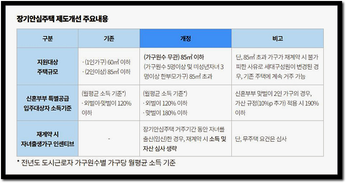 ☞ 5인 이상, 한부모 미성년 3자녀 이상 가구는 85㎡ 초과 가능