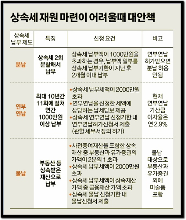 ☞ 연부연납 : 상속세를 여러 번에 나누어 납부하는 방법입니다.
