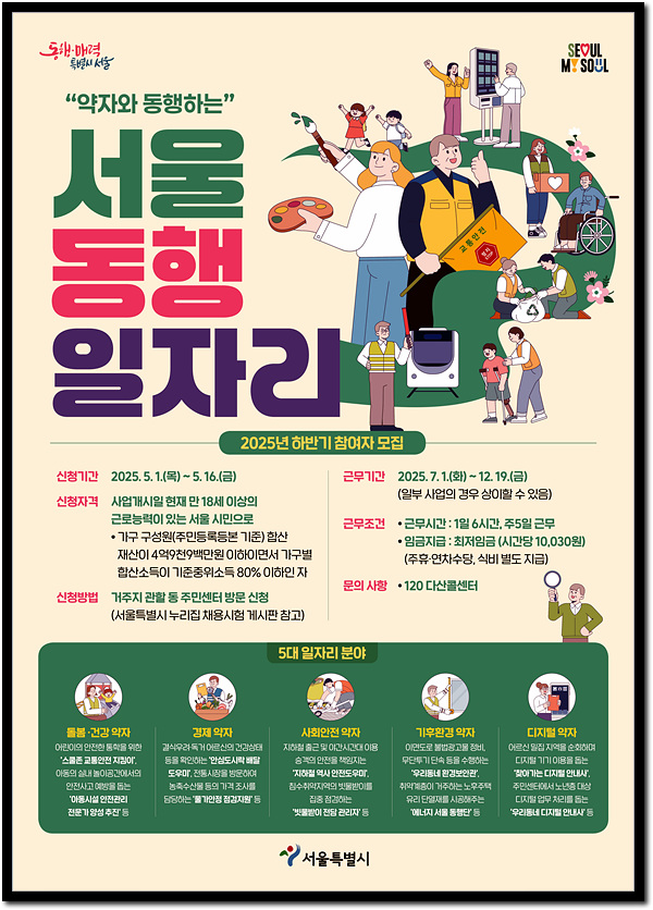 서울시가 사회적 약자에게 일자리를 제공하여 또 다른 약자를 돕는 ‘서울 동행일자리’ 하반기 인원을 모집합니다.