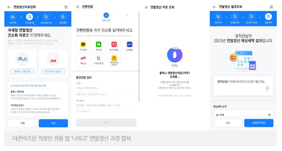신고절차 확 줄인 직장인 전용 앱 '나하고'로 홈택스 간편 인증으로 국세청 자료 반영·제출.