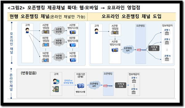 기존에는 온라인에서만 이용 가능했지만, 이제는 오프라인에서도 오픈뱅킹 서비스를 제공하게 됩니다.
