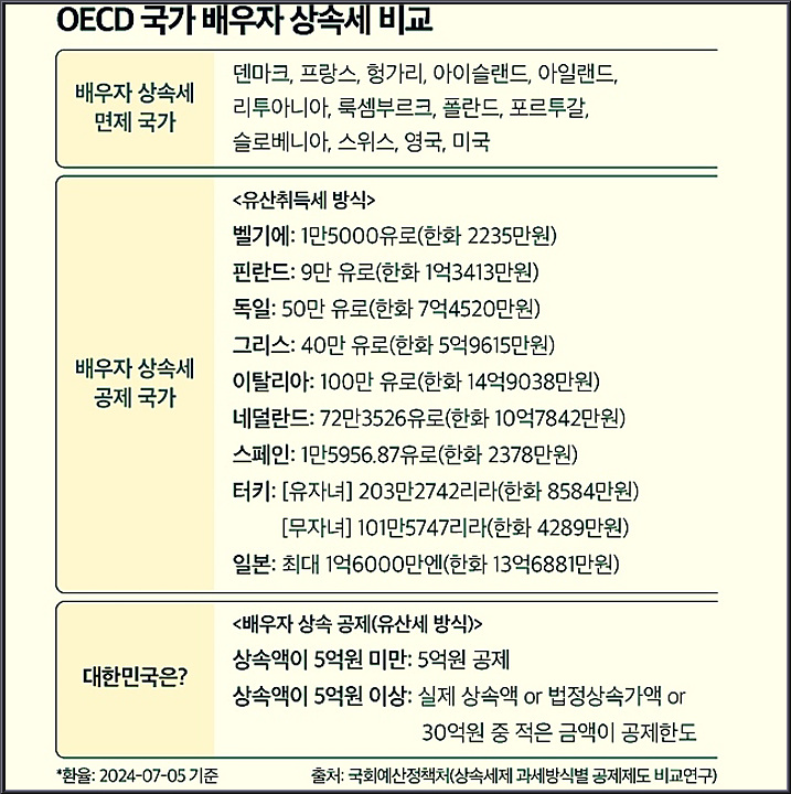 이런 이유로 대부분의 OECD 국가에서는 배우자의 상속세는 전부 면제하고 있습니다.