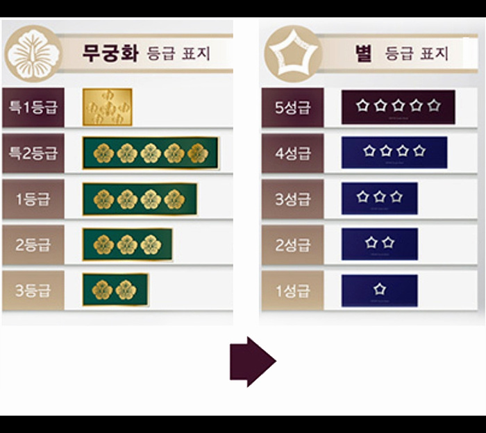 한국에서는 호텔 등급을 매기기 위해 '무궁화'와 '별' 두 가지 시스템을 사용합니다. 무궁화 시스템은 6단계로 나뉘며, 특 1급부터 3급까지의 등급이 있습니다. 반면, 별 시스템은 5단계로 나뉘며, 5성급부터 1성급까지의 등급이 있습니다.