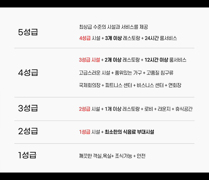 호텔 등급은 고객이 숙소를 선택할 때 중요한 기준이 됩니다.