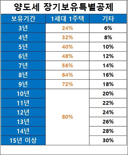 특히, 주택의 경우 보유 기간이 길어질수록 공제 비율이 높아지는 특징이 있습니다.