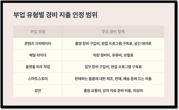 필요경비는 부업을 위해 지출한 비용으로, 이를 제외한 금액이 과세 대상이 됩니다.