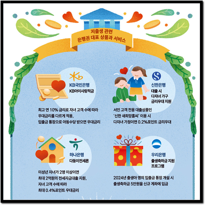 이러한 상품들은 저출생 문제를 해결하기 위한 다양한 금융 지원을 제공하고 있습니다.