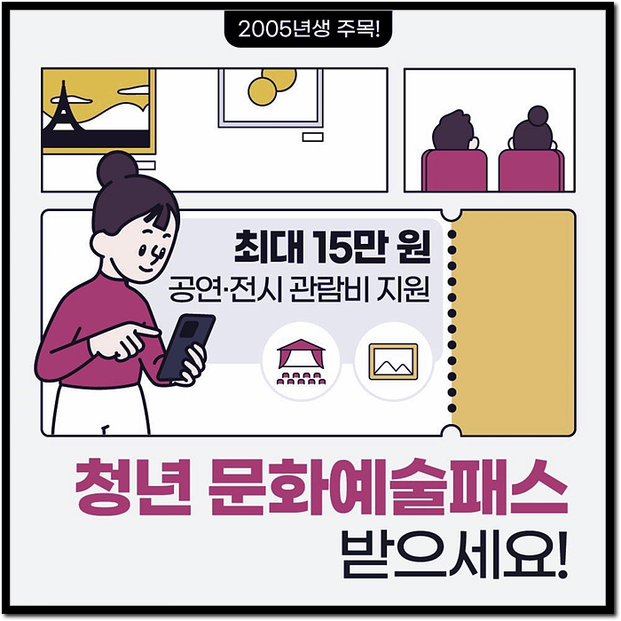 청년 문화예술패스는 단순한 금전적 지원을 넘어, 청년들이 문화예술을 경험하고, 자신의 감성을 키울 수 있는 기회를 제공합니다.
