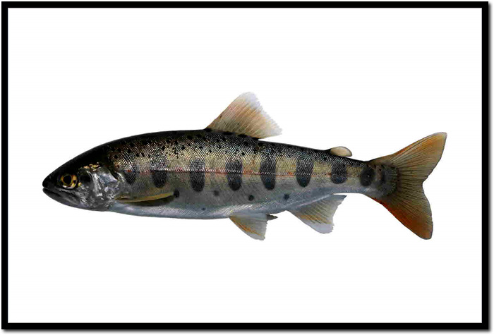 산천어는 연어과로서 사는 곳은 물이 맑은 1급수 계곡에서 서식하는 냉수성 토종 민물고기입니다.