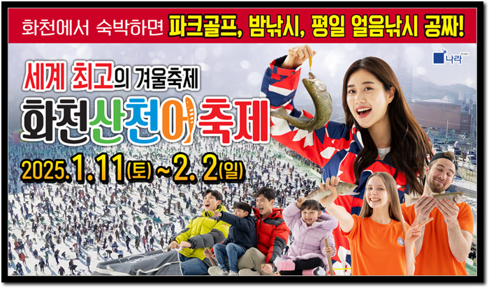 축제 기간 동안 화천의 아름다운 겨울 풍경과 함께 즐거운 시간을 보내시길 바랍니다.