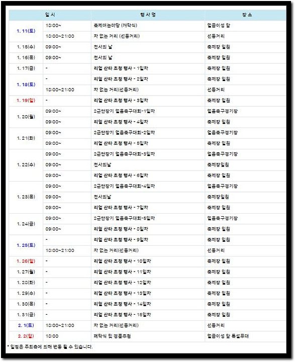 ○ 얼음 낚시터 이용기간 : 2025년 1월 11일 (토) ~ 2월 2일 (일) 까지 진행됩니다.