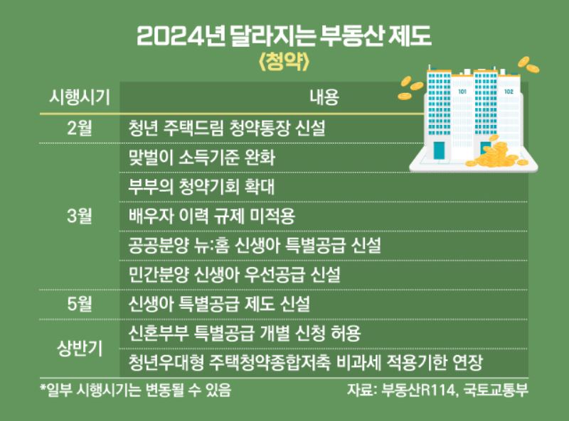 올해 3월부터는 혼인 시 불리하게 적용됐던 청약제도도 개선됩니다. 청년특별공급을 제외한 공공주택특별공급유형에서 맞벌이 소득 기준이 월평균 소득 140%에서 200%로 확대되며, 또 부부가 각각 같은 날 청약에 중복 당첨 시 무효처리되던 방식에서 우선 접수된 것을 당첨된 것으로 인정하는 방식으로 바뀌게 됩니다.