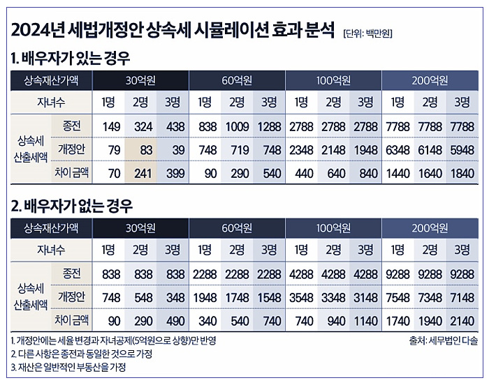 그래도 이번 상속세 개편안으로 개정될 경우 상속세 부담은 많이 낮아질 것으로 예상됩니다.