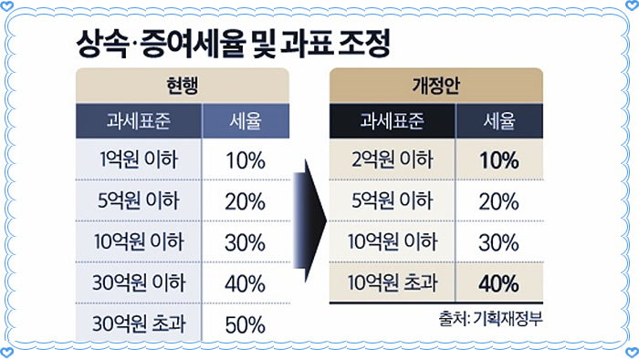 먼저 기획재정부가 발표한 세법개정안 가운데 가장 관심을 모으고 있는 상속세 개편 방향을 알아보기로 합시다.