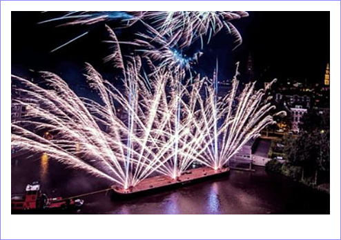 원통형의 발사대에 여러 개의 작은 성들이 장전되어 발사될 때 작은 불꽃들이 마치 지뢰처럼 분산되어 빛을 바라며 솟구쳐 오르는 모양의 단발 불꽃입니다.