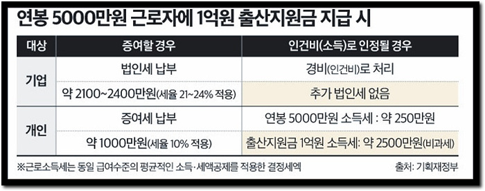 이에 따라, 기업으로부터 받은 출산지원금은 '전액 비과세'가 됩니다.