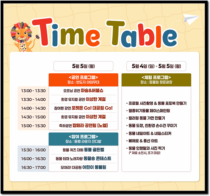 5월 5일에는 흥미로운 프로그램이 준비되어 있습니다.